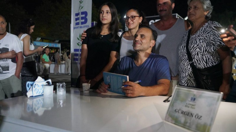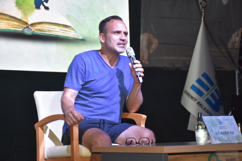 Fuarda sahne alan bir diğer isim, Kuzey Ege aşığı olarak bilinen sanatçı Gürgen Öz’dü. Kara komedi tarzında yaptığı eleştirilerle gündeme dair olayları, mantıksızlıkları ve zihniyet problemlerini ele alan Öz, izleyicilerle keyifli bir söyleşi gerçekleştirdi. Sanatın hayata etkisini kendine özgü üslubuyla anlatan Öz, son kitabı "Garip Bir Yer"den yola çıkarak "Gerçek kalmak, yalanlara inanmayı seçip kendinden vazgeçmemektir" dedi. Söyleşi sonrasında Öz’e, Belediye Meclis Üyesi Muammer Temiz tarafından teşekkür plaketi verildi.