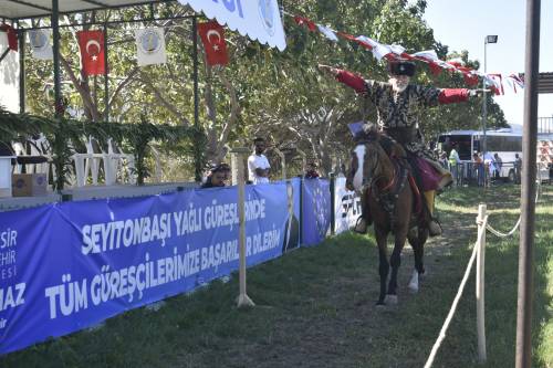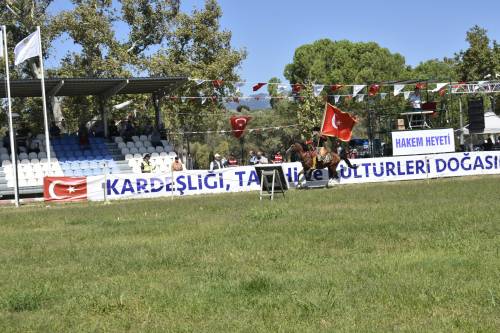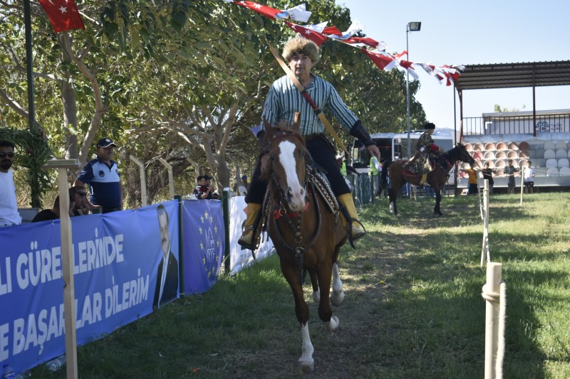 Havran'da Kurtuluş Günü Haftası etkinlikleri kapsamında Havran Millet Bahçesinde Enis Yurdakök ve ekibinin Atlı Okçuluk gösterisi gerçekleştirildi. İzleyenlerden tam not alan gösteri ayakta alkışlandı. (Ebru Erdem)