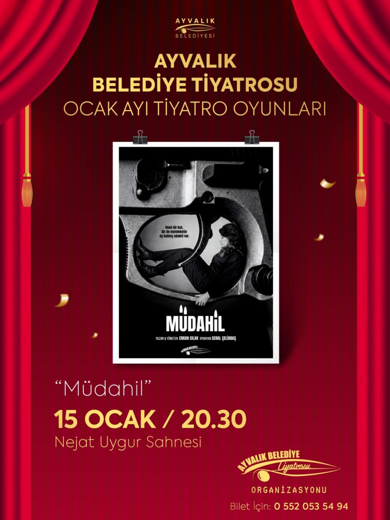 Ayvalık Belediye Tiyatrosu Genel Sanat Yönetmeni Erkan Cılak’ın yazdığı ve yönetmenlik koltuğuna oturduğu, Seral Çelikbaş’ın performansıyla sahneye konan ikinci proje, Türkiye’de, hemen her yıl cinayete kurban giden kadınların yaşamlarına dikkat çeken Müdahil isimli oyun da 15 Ocak Perşembe akşamı prömiyer yaparak izleyiciyle buluşacak.