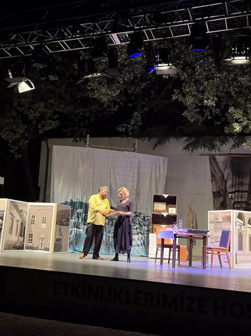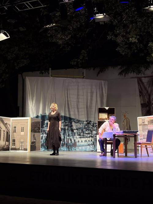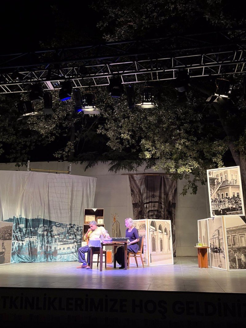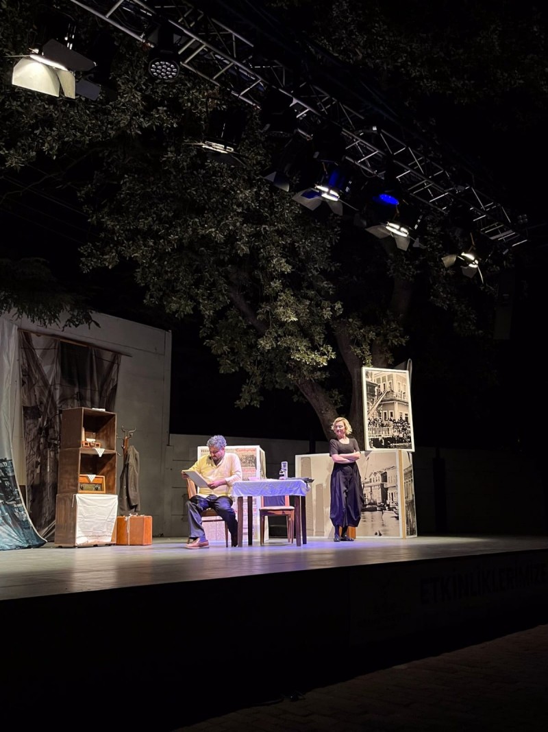 Başrollerde ise Arzu Yanardağ ile oyunun yazarı ve yönetmeni Erkan Cilak, yer aldı. Ayvalık’taki mübadele dönemini bir kadının gözünden anlatan oyun, tarihsel süreci bireysel acılarla harmanlayarak sahneye taşıdı. Yaşanmışlıkların, yarım kalmış hikâyelerin ve bir halkın belleğinde yer eden izlerin güçlü bir anlatımla aktarıldığı oyun, binlerce seyirci tarafından büyük bir ilgi ve dikkatle izlendi.