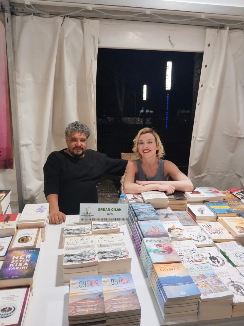 Oyun sonrası tiyatro ekibi, kitap fuarının stant alanına geçti. Erkan Cilak ve Arzu Yanardağ, fuarda kendi kitaplarının bulunduğu bölümde izleyicilerle buluşarak imza etkinliği gerçekleştirdi.