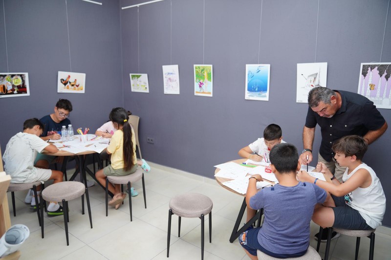 Ayvalık Belediyesi tarafından düzenlenen Karikatür Atölyesi, Kırlangıç Yaşam Merkezi’nde gerçekleştirildi. Atölyede çocuklar, karikatürist Murat Asın eşliğinde temel çizim tekniklerini öğrendi, kendi karikatürlerini çizdi.