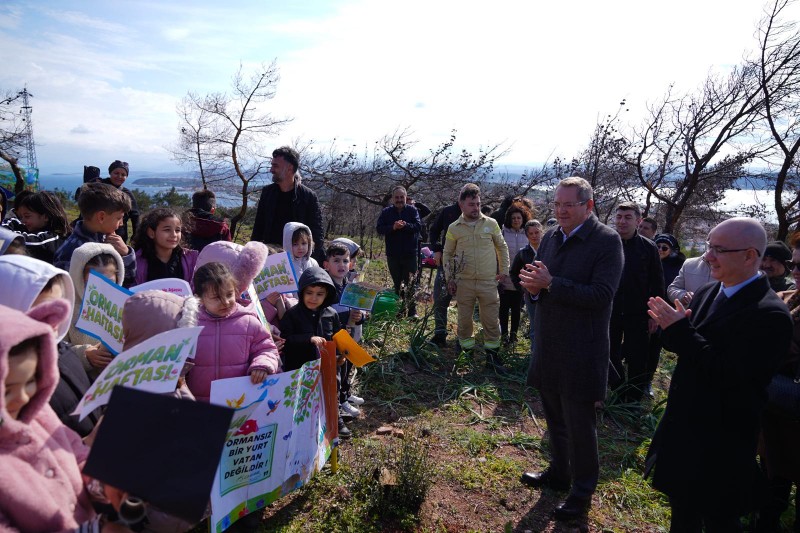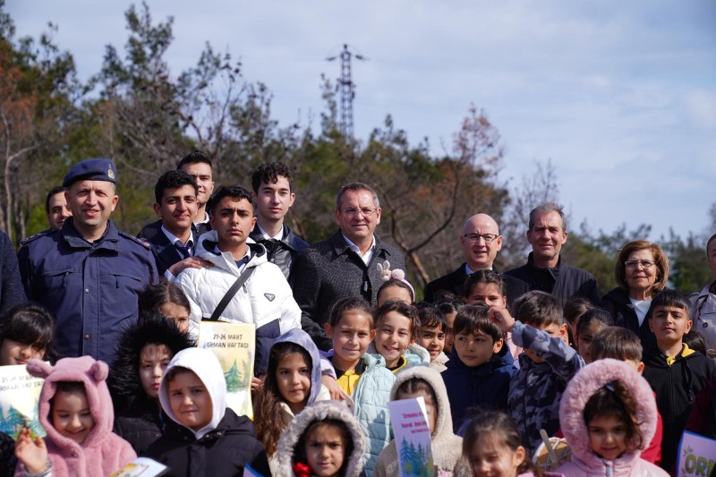 Ayvalık Belediye Başkanı Mesut Ergin, 21 Mart Dünya Ormancılık Günü ve Orman Haftası kapsamında öğrencilerle birlikte 150 fıstık çamını toprakla buluşturdu.
