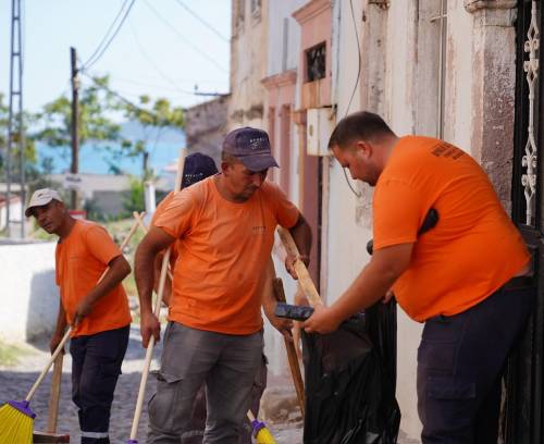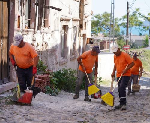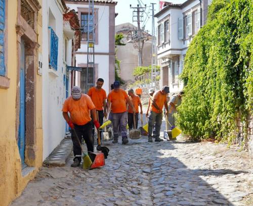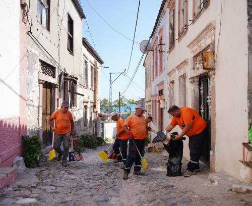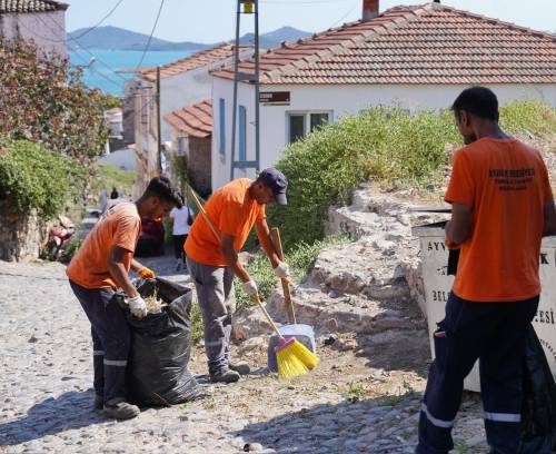 Ayvalık Belediyesi, kent genelinde sürdürdüğü temizlik seferberliğini bu kez Cunda (Alibey) Adası’na taşıdı. Temizlik İşleri Müdürlüğü ekipleri, turuncu tişörtleriyle adanın tarihi sokaklarını adım adım gezerek detaylı bir mıntıka temizliği gerçekleştirdi.