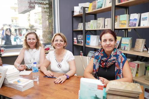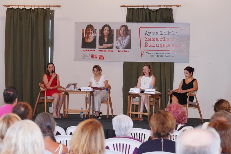 Ayvalık’ın edebiyat dünyasına kazandırdığı güçlü kalemler Aysun Kara, Esme Aras ve Derya Sönmez, “Arnavut Kaldırımlarının Hikâyedeki İzi” başlıklı söyleşide bir araya geldi.