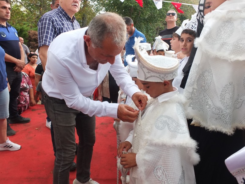 Burhaniye ilçesinde, 34. Burhaniye Ören Turizm, Kültür Ve Sanat Festivali kapsamında düzenlenen toplu sünnet şöleninde 21 çocuk erkekliğe adım attı. Ören Ayaklı Kır Bahçesinde düzenlenen etkinlikte, sünnet olan çocuklara, Belediye Başkanı Ali Kemal Deveciler ve meclis üyeleri tarafından çeyrek altın takılırken, birer de kitap hediye edildi.