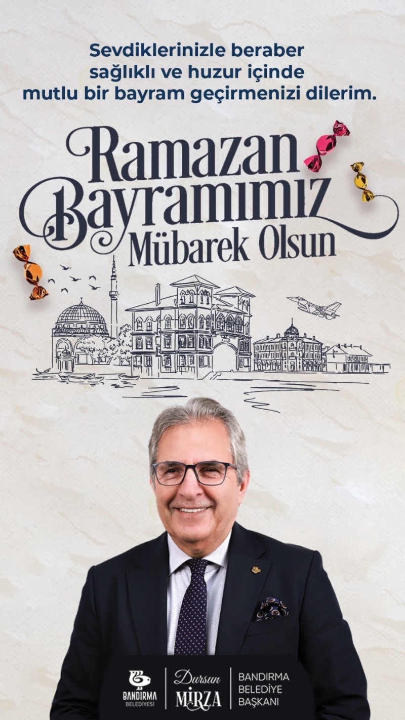 Zor zamanlardan geçiyoruz. Ancak biliyorum ki bu güzel ülke, bu büyük millet, birlik ve beraberlik içinde her zorluğun üstesinden gelecektir. Bu duygu ve düşüncelerle, başta kıymetli Bandırmalı hemşehrilerimiz olmak üzere, Türk İslam âleminin Ramazan Bayramı’nı en içten dileklerimle kutluyor; sevdiklerinizle birlikte sağlıklı, huzurlu ve mutlu bir bayram geçirmenizi temenni ediyorum."