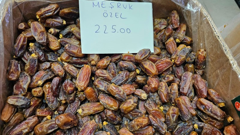 Özcan, hurma fiyatlarıyla ilgili, "100 liradan 550 liraya kadar hurma çeşitlerimiz mevcut. Kuru hurmalar, taze hurmalar ve dallı hurma çeşitlerimiz de var. Dökme İran hurması şu an 100 lira. Meşruk hurması, Medine'nin tanınan hurmalarından biri ve 180 liradan başlıyor. 225 liralık versiyonu da mevcut. Siyah hurma olarak bilinen Safavi hurmasının fiyatı 350 ile 400 lira arasında değişiyor. Ayrıca daha az şeker içeren, diyet hurması olarak bilinen Sukai hurmamız da var." dedi.
