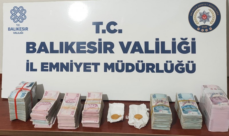 Şüphelilerin üzerlerinde ve bulundukları yerde yapılan aramalarda, suçtan elde edildiği değerlendirilen yüklü miktarda Türk Lirası ile birlikte 2 adet kulplu Reşat beşli altın ele geçirildi.
