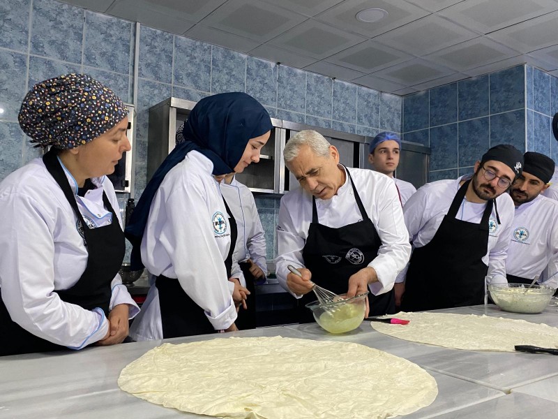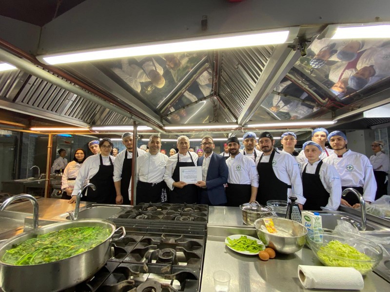 Eğitimin uygulama aşamasında, bölgenin mevsimsel zenginliklerini ve atık yönetimini temel alan özel bir menü üzerinde çalışıldı. Atölye çalışması kapsamında katılımcılarla birlikte lor böreği, fesleğenli Girit ezmesi, kuzu göbeği mantarı, çağla salatası, Arap saçlı sübye ve Akkız şevketi bostan gibi bölge mutfağının seçkin yemekleri hazırlandı. Ayrıca “mutfakta atık minimizasyonu” stratejisi doğrultusunda; hazırlık sürecinden artan otlar ve kabakların değerlendirildiği Arap saçlı kabak mücveri, sıfır atık yaklaşımının mutfaktaki üretken ve sürdürülebilir bir örneği olarak uygulamalı şekilde deneyimlendi.