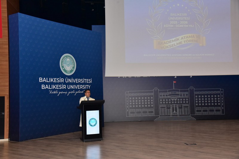 Balıkesir Üniversitesinde (BAÜN) 2025-2026 Eğitim-Öğretim Yılı Akademik Atama ve Yükselme Töreni düzenlendi. BAÜN Atatürk Kongre ve Kültür Merkezi Şehit Fethi Sekin Konferans Salonunda gerçekleştirilen törene; BAÜN Rektörü Prof. Dr. Yücel Oğurlu, Rektör Yardımcıları Prof. Dr. Cevdet Avcıkurt, Prof. Dr. Murat Doğdubay, Prof. Dr. Fatih Satıl, senato üyeleri, 2025 ve 2026 yıllarında ataması ve yükselmesi gerçekleşen öğretim üyeleri ile aileleri katıldı.