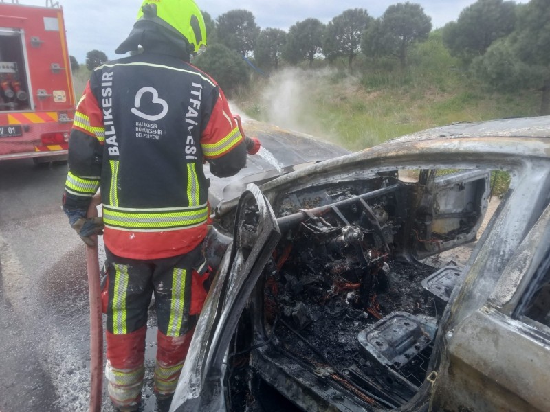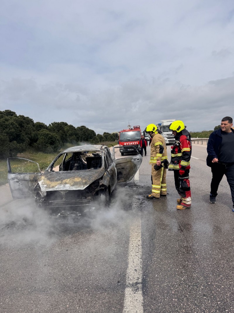 Biga-Bandırma Karayolu Marmara OSB yakınlarında çıkan araç yangını ekiplerin müdahalesiyle söndürüldü.