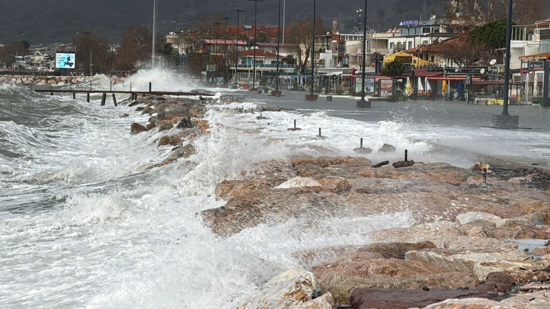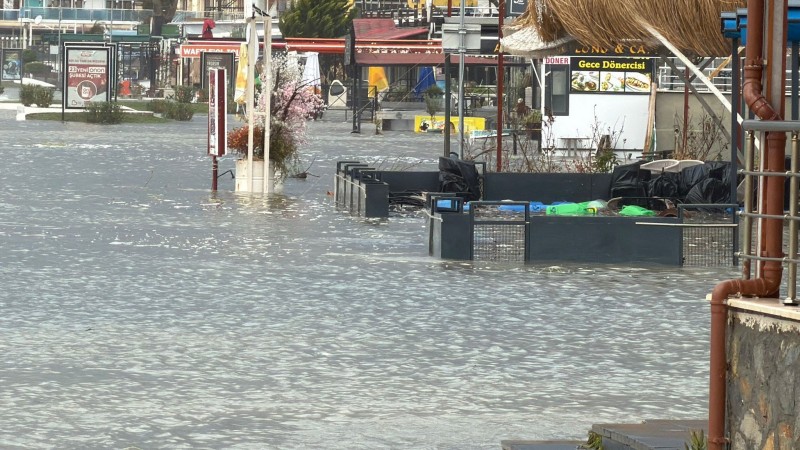 Edremit ilçesinde etkili olan şiddetli lodos fırtınası hayatı felç etti. Saatteki hızı 90 kilometreye ulaşan fırtına sebebiyle deniz taştı, turistik işletmeler sular altında kaldı. Kara ile denizin birleşmesi sonrası ekipler alarma geçti.