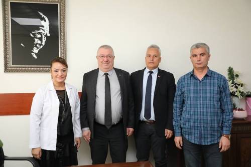 Başkan Ertaş, Belediye Başkan Yardımcısı Coşkun Taşkın ile birlikte Edremit Devlet Hastanesi Başhekimi Op. Dr. Oktay Yıldırım, Ali Fahri Akıllıoğlu Ağız ve Diş Sağlığı Merkezi Başhekimi Dt. Betül Değirmen ve İlçe Sağlık Müdürü Uz. Dr. Refik Budak’ı ziyaret etti.
