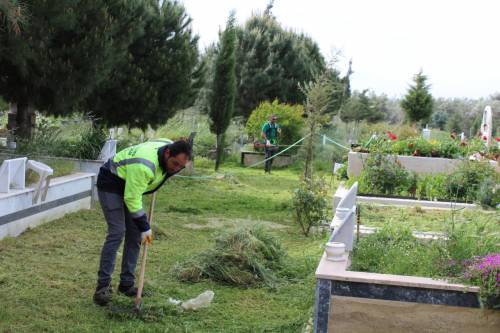 Edremit Belediyesi, Kurban Bayramı öncesinde ilçede kapsamlı temizlik ve düzenleme çalışması yapıyor. Mezarlıklarda sürdürülen temizlik çalışmaları, vatandaşların bayram ziyaretlerini rahatça yapabilmesi için titizlikle gerçekleştiriliyor.