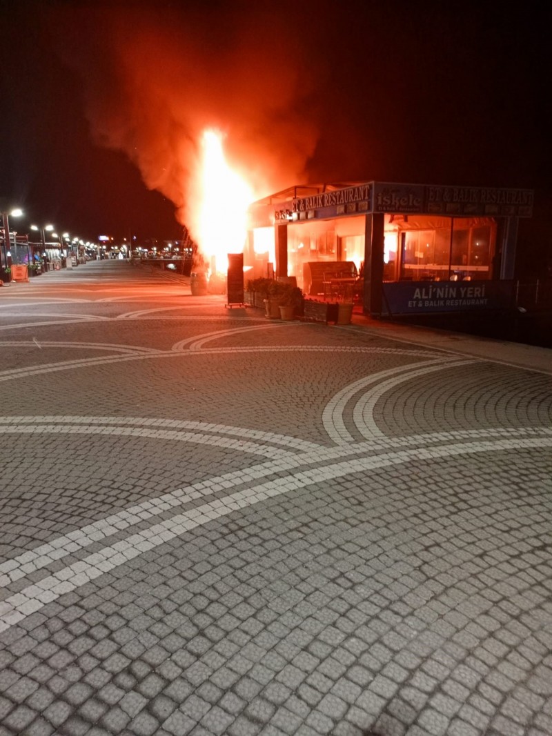 Balıkesir’in Edremit ilçesinde sahil şeridindeki bir iş yerinde çıkan yangın, itfaiye ekiplerinin müdahalesiyle söndürüldü.