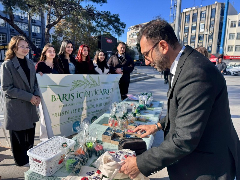 Balıkesir Üniversitesi Burhaniye Uygulamalı Bilimler Fakültesi, fakülte sosyal sorumluluk çalışmaları kapsamında Filistinli çocukların eğitimine yönelik anlamlı bir projeye imza attı. Fakülte öğrencileri tarafından yürütülen "BUBFA ile Barış İçin Ticaret" projesi, Burhaniye Cumhuriyet Meydanı’nda kurulan satış standında gerçekleştirildi.