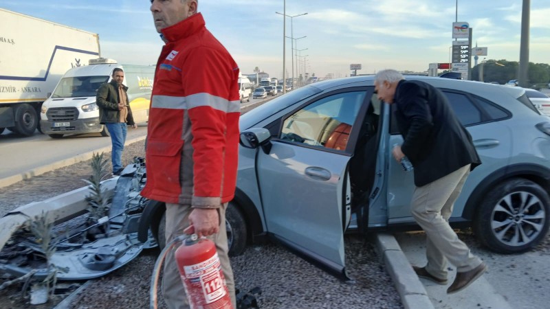 Edinilen bilgiye göre, Bursa-Çanakkale istikametine seyreden 10 ATK 886 plakalı otomobilin sürücüsü, direksiyon hâkimiyetini kaybetti. Orta refüjdeki aydınlatma direğine çarpan otomobile çevredeki akaryakıt istasyonundan temin edilen yangın söndürme ekipmanlarıyla müdahale edildi.