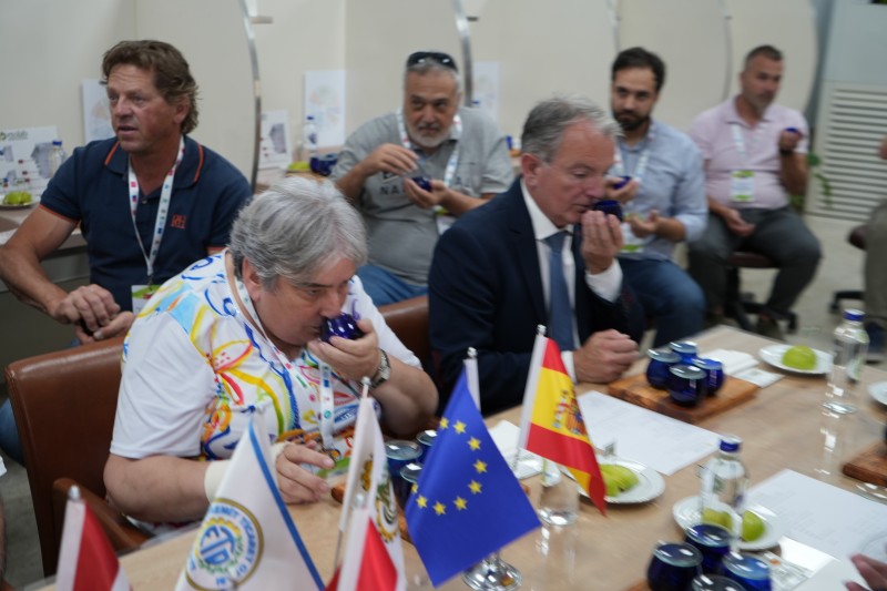 Balıkesir'in Edremit Belediyesi'nin zeytin ve zeytinciliğin devamlılığını sağlayarak, yöresel zeytin türlerinin iklim değişikliğinden kaynaklanan tehditlerden korunması amacıyla başlattığı “İklim Çağında Zeytin Ağacı Yetiştiriciliği: Uyum Stratejileri ile Mücadele” projesi ortaklarından İspanyol ve Yunan zeytinciler, zeytinyağı tadımı yaptı. Misafir üreticiler, tadına baktıkları zeytinyağlarına tam not verdi.