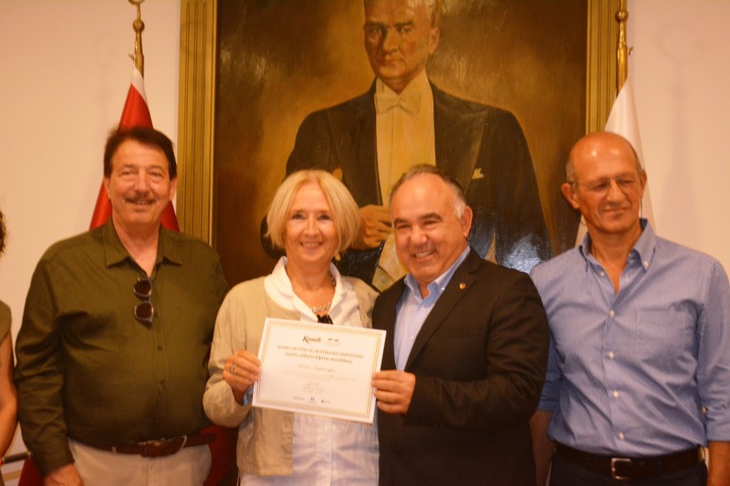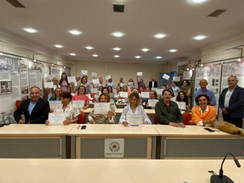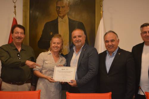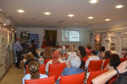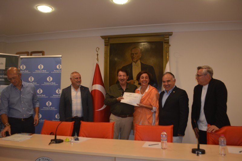 Kadın çiftçiler için verilen sonbahar eğitimlerinin ikinci etabının sertifika töreninde; Bülent Önder ve Mehmet Cavlı’nın yanı sıra Ayvalık Ticaret Odası Başkanı Ali Uçar, ATO Yönetim Kurulu Mehmet Çokkorkmaz ve proje eğitmenleri yer aldı.