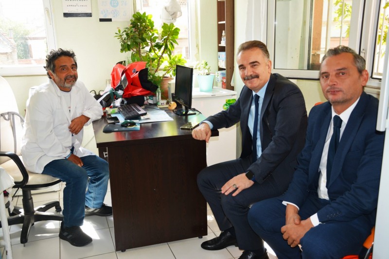 Edremit Kaymakamı Ahmet Odabaş, Gazze Şeridi'ne Sumud Filosu ile insani yardım taşıyan gemide İsrail askerleri tarafından rehin alma olayında mağdur olan ve sağ salim Edremit'e dönen 3 Nolu Ayşe Akpınar Aile Sağlığı Merkezi hekimi Dr. Ergün Akpınar'ı ziyaret ederek "Geçmiş olsun" dileklerinde bulundu.
