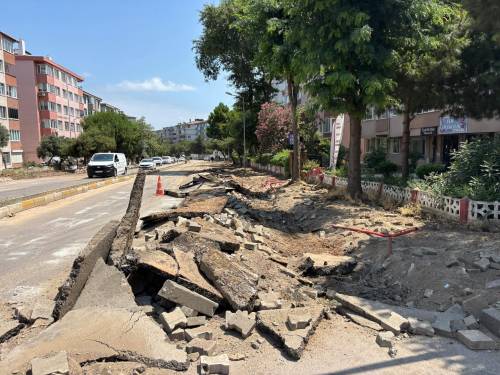 "Mehmetçik Caddesi’nde, Atatürk Bulvarı’ndan Kültür Merkezi’ne kadar uzanan karşılıklı yaya kaldırımlarının yapımına başladık."