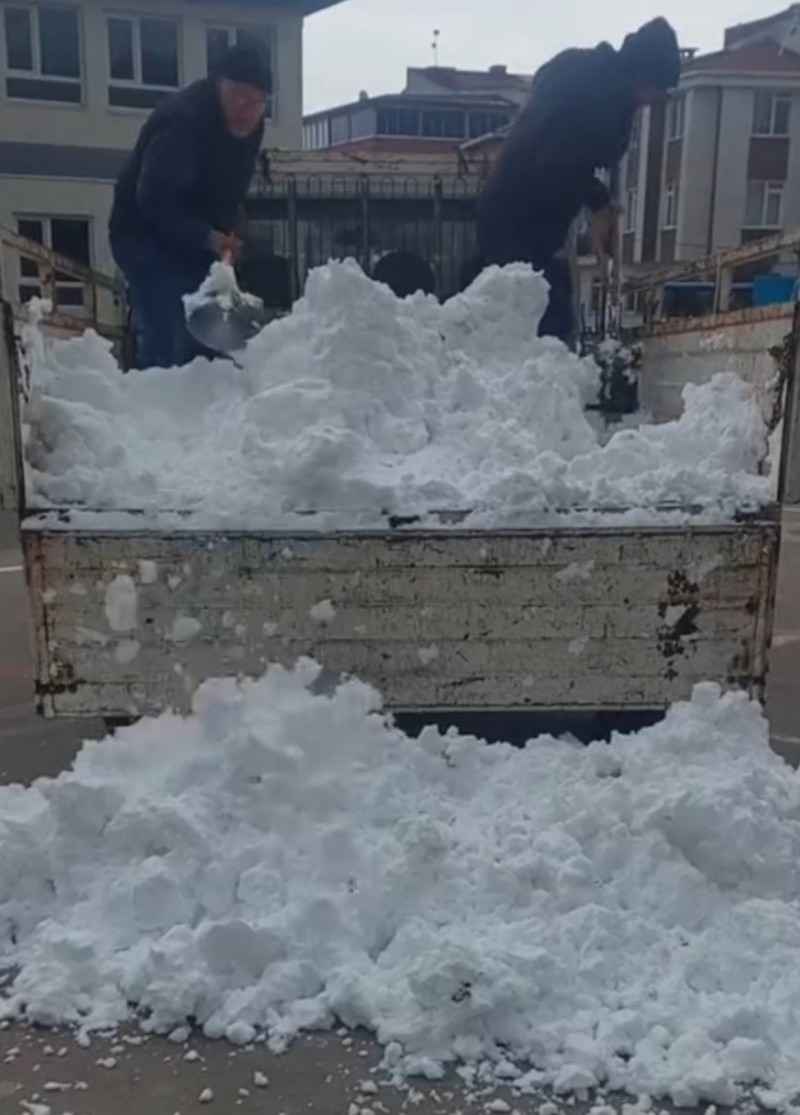 Kar yağışını göremeyen ve karla oynama fırsatı bulamayan öğrenciler, okul bahçesinde kartopu oynayarak ve kardan adam yaparak keyifli anlar yaşadı. Çocukların neşesi, okul bahçesinde adeta bir kış manzarası oluşturdu.