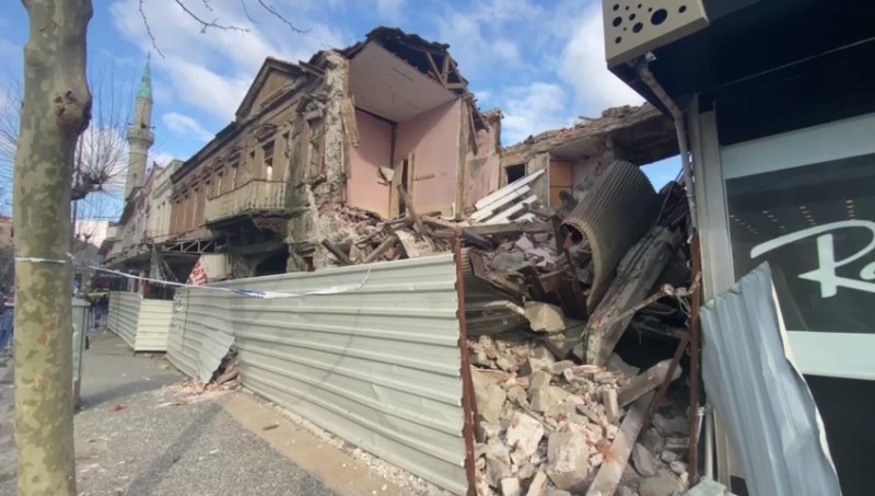 Edinilen bilgiye göre, Edremit'in kent kimliğinde önemli tarihi yapılar arasında yer alan binanın ön cephesinde geçtiğimiz günlerde yaşanan aşırı yağışlar sonrası çökmeler meydana gelmişti. Olayın ardından belediye zabıta ve fen işleri ekipleri bölgeyi kordon altına alarak güvenlik önlemleri almıştı. Bugün ise tarihi yapının geriye kalan kısmında büyük bir çökme daha yaşandı.