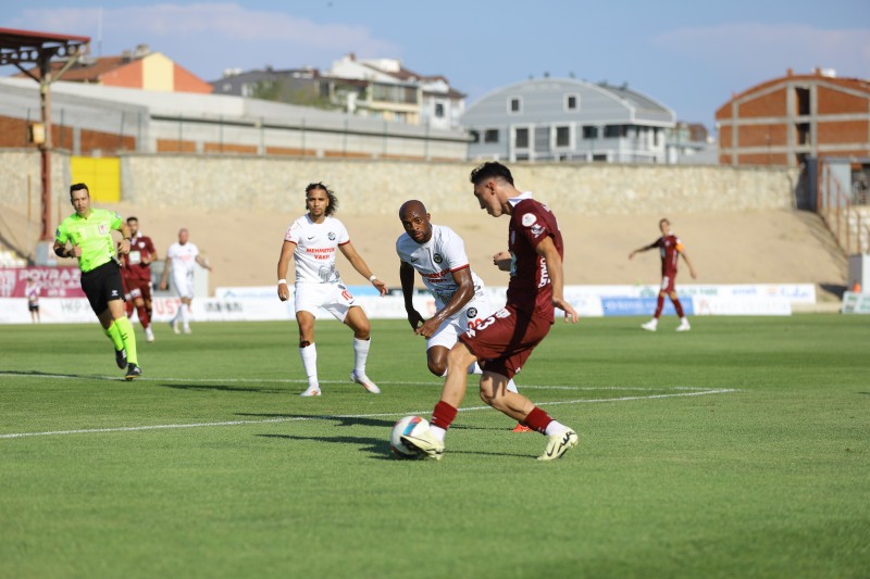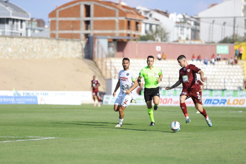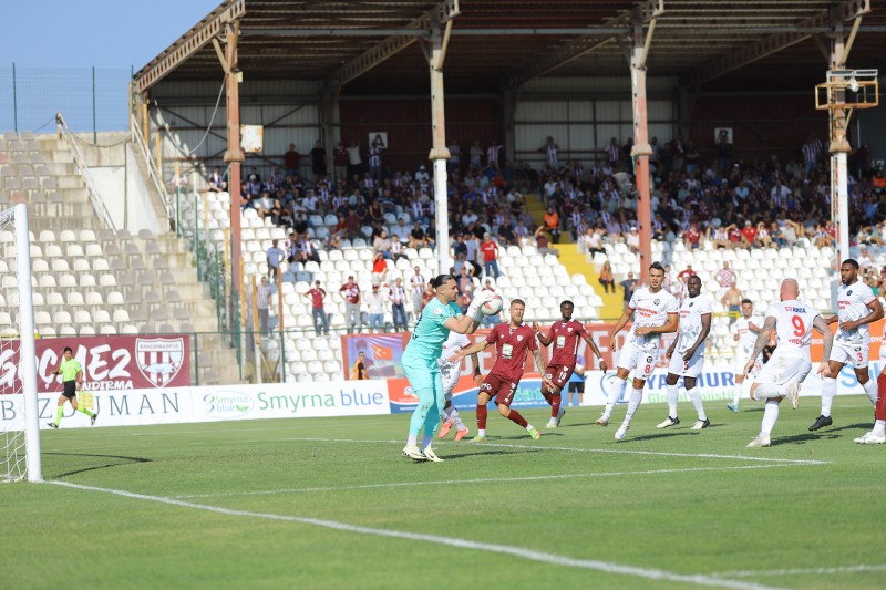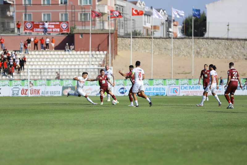 90+3. dakikada Bandırmasporlu İbrahim Kaya, ceza sahası dışı sol çaprazdan kazanılan serbest vuruşta kaleyi düşünürken top uzak direk yakınından dışarı gitti.