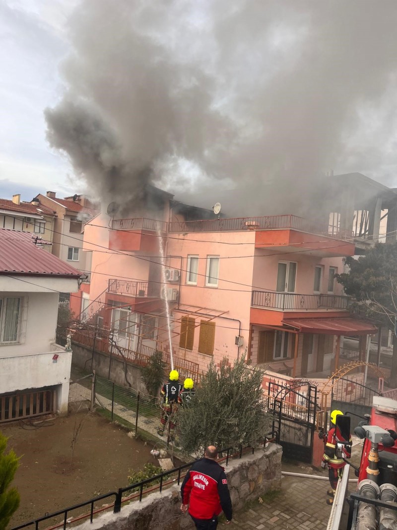Yangın, Burhaniye ilçesi Bahçelievler Mahallesinde meydana geldi. 3 katlı binanın çatı katından alevlerin yükseldiğini gören vatandaşlar, durumu 112 Acil Çağrı Merkezi'ne bildirdi. İhbar üzerine olay yerine itfaiye, sağlık ve polis ekipleri sevk edildi.