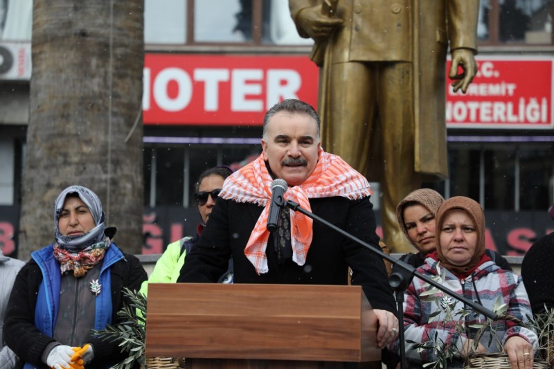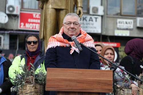 Edremit Belediye Başkanı Mehmet Ertaş yaptığı konuşmada, “Bugün burada sadece bir şenliği değil, bir kültürü, bir mirası, bir emeği kutluyoruz. Toprağın bereketinin, zeytinin kutsallığının, emeğin alın terinin buluştuğu meci şenliğindeyiz. Bugün imece ruhunu yaşatıyoruz ve hasadın bereketini coşkuyla kutluyoruz. Ben de zeytin üreticiliği yaptım, Edremit’in zeytini bizim için her şeydir. Kazdağları’nda kök salan ölmez ağaçtır. Bu vesile ile toprağa alın teri döken Edremit’in zeytin üreticilerine şükranlarımı sunuyorum.” dedi.