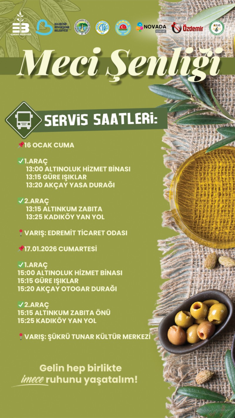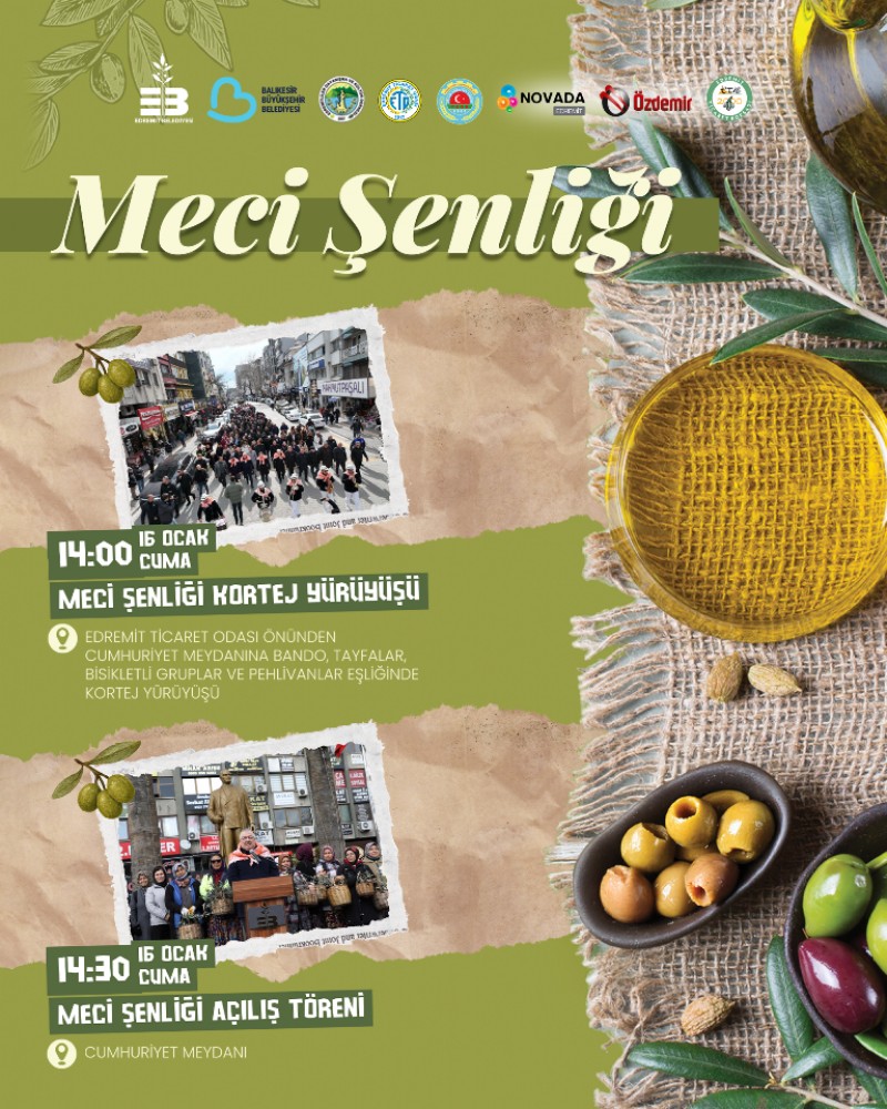 Edremit Belediyesi ev sahipliğinde düzenlenecek şenliğe; Balıkesir Büyükşehir Belediyesi, Edremit Ticaret Odası, Edremit Ziraat Odası ve Edremitliler Kültür ve Dayanışma Derneği destek veriyor. Yüzyıllardır imece kültürünün simgesi olan MECİ geleneği, iki gün boyunca düzenlenecek etkinliklerle yeniden yaşatılacak.