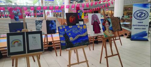 İngiltere sergisi öncesi Zühtü Özkardaşlar Anadolu Lisesi Balıkesir Esas 10 Burda AVM'de iki Görsel Sanatlar Sergisi açtı.