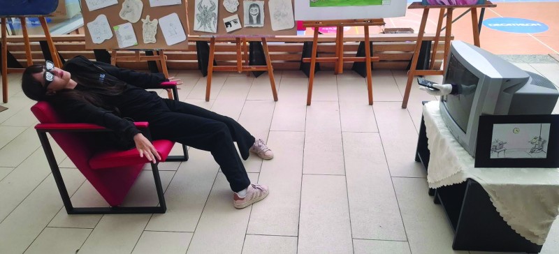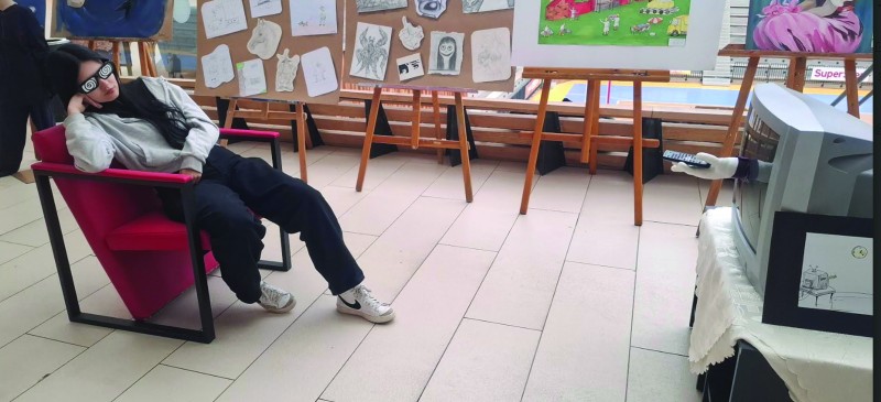 Görsel sanatlar öğretmeni Sertan Aksakal ve öğrencileri farklı tarz ve konuları ele aldıkları sergide bir de 1960'larda ortaya çıkan "performans sanatı" gerçekleştirdiler. TV kumandası tutan, TV ekranından çıkan bir el ile hipnoz edilerek etki altına alınan bir insanı konu edinen performatif sanat çalışması ziyaretçiler tarafından ilgiyle karşılandı. Aksakal haziran ayında İngiltere'de açmayı planladıkları karikatür sergisi öncesi öğrencilerinin ortaya koyduğu eserleri Balıkesirli sanatseverlerle buluşturmanın heyecanını yaşadıkları belirtti.