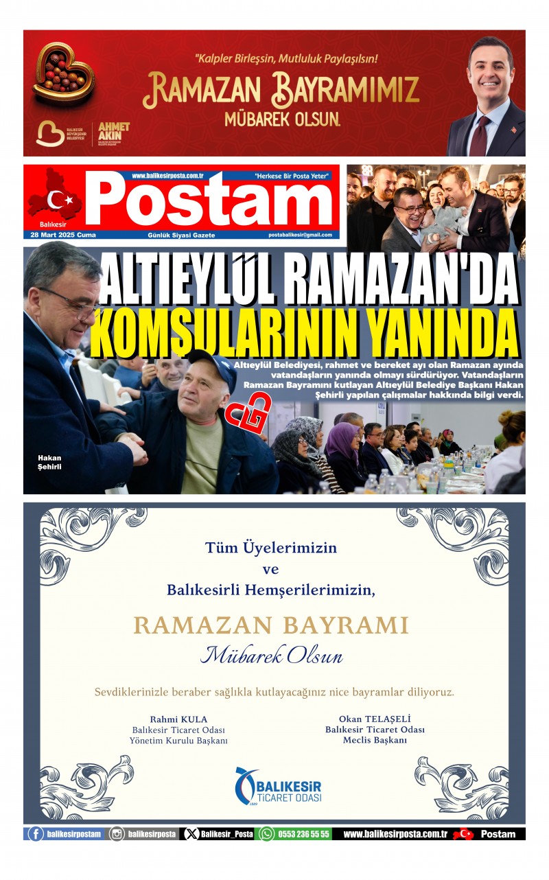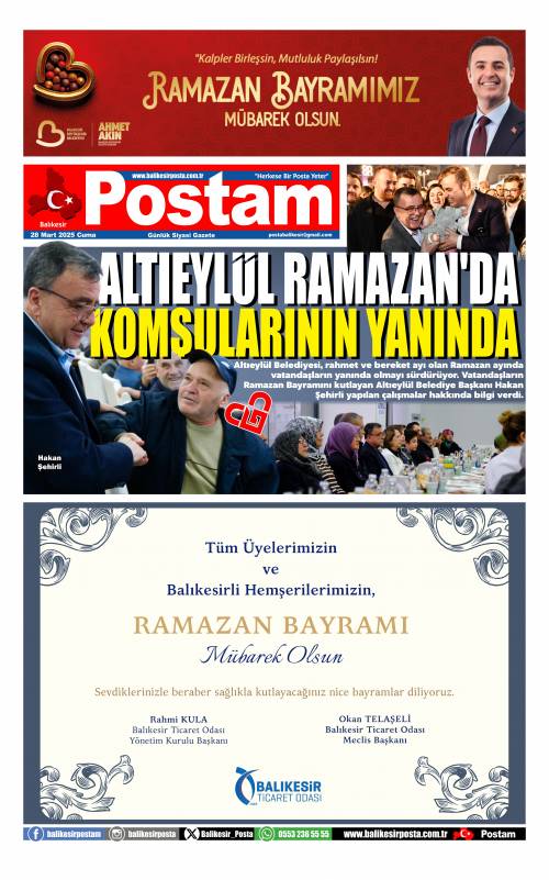 Altıeylül Belediyesi, rahmet ve bereket ayı olan Ramazan ayında vatandaşların yanında olmayı sürdürüyor. Vatandaşların Ramazan Bayramını kutlayan Altıeylül Belediye Başkanı Hakan Şehirli yapılan çalışmalar hakkında bilgi verdi.