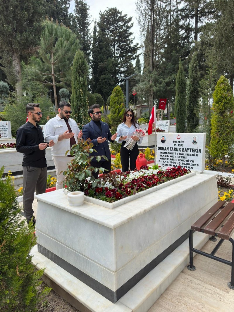 Gerçekleştirilen ziyarette heyet, vatan uğruna hayatını kaybeden şehitlerin kabirlerine karanfil bırakarak dua etti.