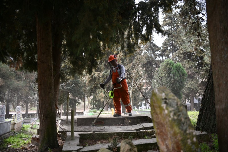 Bayram öncesi hummalı bir çalışma gerçekleştiren Balıkesir Büyükşehir Belediyesi mezarlıkları özenle temizliyor. Kuru otların temizlendiği mezarlıklar aynı zamanda haşerelerden de arındırılarak vatandaşlar için güvenli hale getiriliyor. İl genelindeki mezarlık yollarında da temizlik ve bitki bakımı yapan ekipler mezarlıklarda kapsamlı çalışma gerçekleştirdi.