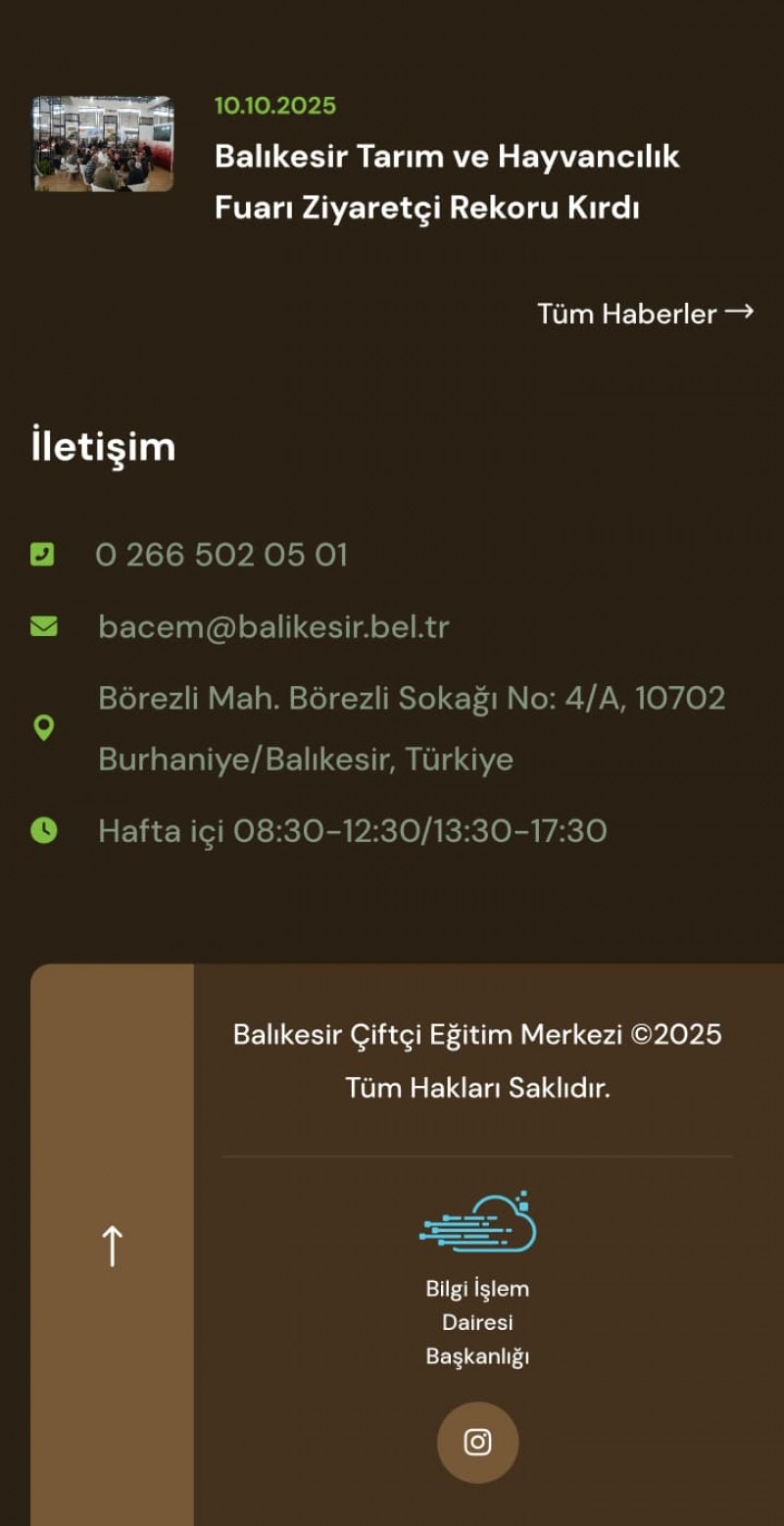 Balıkesir Büyükşehir Belediyesi Çiftçi Eğitim Merkezi (BAÇEM), https://bacem.balikesir.bel.tr/ web sitesi aracılığıyla gerçekleştirdiği kursları, başvuru koşullarını ve kayıt tarihleri gibi bilgileri vatandaşlarla buluşturuyor. Yenilenen yüzüyle kendi ürünlerini doğrudan pazara taşımayı kolaylaştıracak bir uygulamaya sahip https://bacemeticaret.balikesir.bel.tr/ web sitesi üzerinden ürünlerini satışa çıkartan BAÇEM, burada ürün çeşitlerini sergileyip satışa sunarken; tüketiciler ise tazeliği, yerel üretimi ve güvenilirliği ön planda tutan ürünlere pratik şekilde erişebiliyor. Ayrıca web sitesi aracılığıyla teslimat seçenekleri ve ödeme koşulları gibi ticari detaylar site üzerinden açıkça belirtilerek, kullanıcı dostu ara yüz ile alışveriş süreci şeffaf ve keyifli hale geliyor.