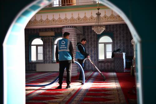 İbadethaneleri detaylı olarak temizleyen Balıkesir Büyükşehir Belediyesi Sağlık ve Sosyal İşler Daire Başkanlığı ekipleri tarafından mobil araçlarla camiler detaylı olarak temizlendi. Özellikle sıcak su ve köpüksüz deterjanlı buharlı sistem ile cami ve mescitlerde hummalı bir temizlik çalışması yürütülüyor. Halıları da yıkanan camiler, gül suyu da dökülerek ferah bir ortama kavuşması sağlanıyor.