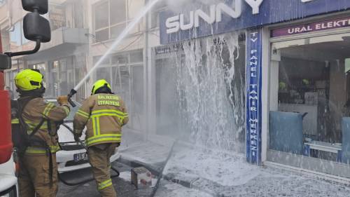 Balıkesir'in Karesi ilçesinde elektronik tamiri yapan serviste meydana gelen yangın panik oluşturdu. Trafiğin yoğun olduğu bir saatte çıkan yangına itfaiye ekipleri müdahale etti.
