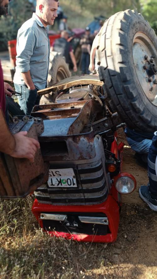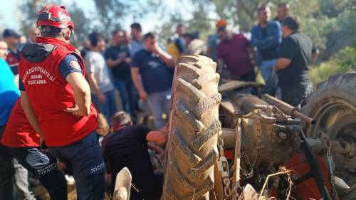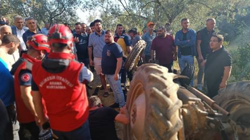 Balıkesir'in Edremit ilçesinde takla atan traktörün altında kalan sürücüyü çevre sakinleri kurtardı.