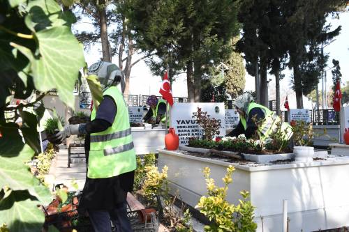 Vatan uğruna hiç düşünmeden canlarını feda eden kahraman şehitlerin aziz hatırasını yaşatmak için tüm ekipleri seferber eden Balıkesir Büyükşehir Belediye Başkanı Ahmet Akın liderliğinde, şehitliklerdeki bakım ve onarım çalışmalarının yanı sıra şehit mezarları çiçeklerle bezendi.