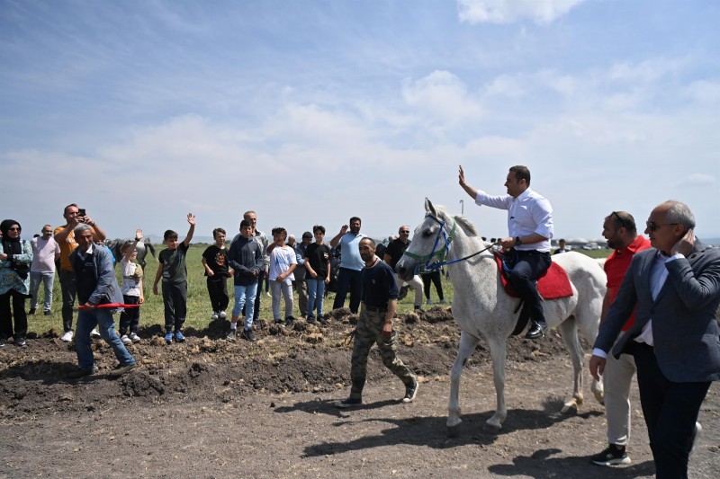 Halalca kırsal mahallesinde hayır yemeklerinin yenilmesinin ardından düzenlenen at yarışına da katılarak at üstünde davul ve zurna eşliğinde yarışı başlatan Başkan Ahmet Akın, yarışı sonuna kadar ilgiyle izledi.