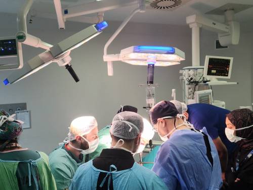 Genel Cerrahi Anabilim Dalı Başkanı Prof. Dr. Murat Başbuğ, operasyonlar hakkında bilgi verirken, Genel Cerrahi Anabilim Dalı akademisyenlerinden Dr. Öğr. Üyesi Azad Gazi Şahin ile birlikte gerçekleştirdikleri bu önemli ameliyatların hastanemizin ve kliniğimizin cerrahi kapasitesini ve başarısını açıkça ortaya koyduğunu, bu başarılı cerrahi müdahalelerin sadece tıp fakültemizin ve hastanemizin bilimsel ve klinik yetkinliğini güçlendirmekle kalmayıp aynı zamanda ülkemizde ileri düzey cerrahi uygulamalar alanında öncü bir örnek teşkil ettiğini ve hastalarımıza en iyi sağlık hizmetini sunmak amacıyla multidisipliner ve disiplinlerarası yaklaşımla çalışmalarını sürdürdüklerini ifade etti.