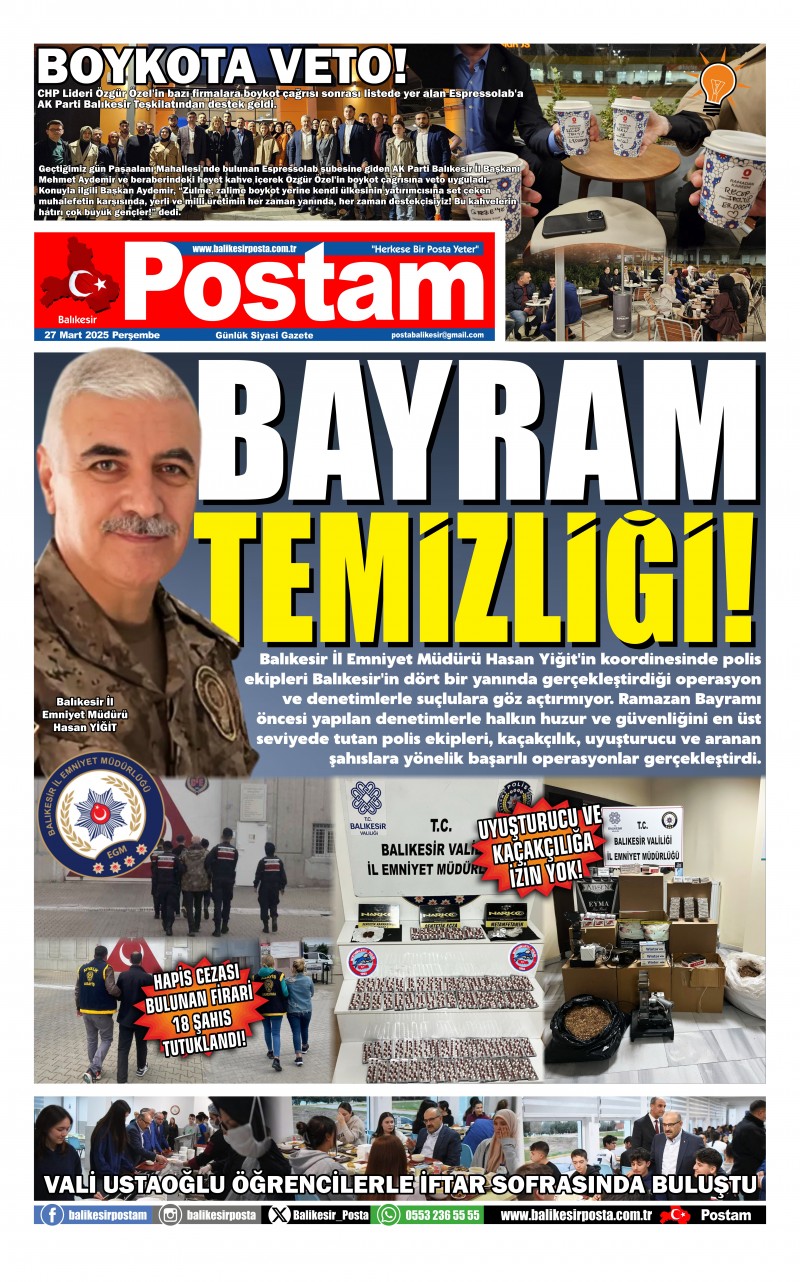 Balıkesir İl Emniyet Müdürü Hasan Yiğit’in koordinesinde polis ekipleri Balıkesir’in dört bir yanında gerçekleştirdiği operasyon ve denetimlerle suçlulara göz açtırmıyor. Ramazan Bayramı öncesi yapılan denetimlerle halkın huzur ve güvenliğini en üst seviyede tutan polis ekipleri, kaçakçılık, uyuşturucu ve aranan şahıslara yönelik başarılı operasyonlar gerçekleştirdi.