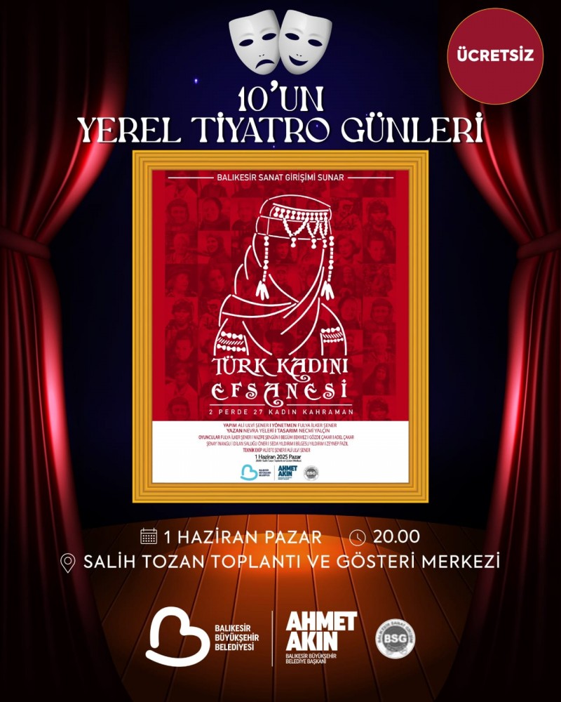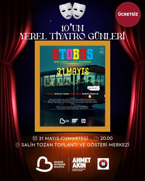 Hayat pahalılığının günden güne arttığı bu dönemde sanatsal faaliyetlere erişimin de kısıtlı olduğunun bilinciyle Balıkesir Büyükşehir Belediyesi, 7’den 70’e herkesi ücretsiz tiyatro oyunlarıyla buluşturuyor. Ailelerin evlatlarıyla birlikte seyredebilecekleri çocuk ve yetişkin tiyatro oyunlarını 31 Mayıs - 2 Haziran 2025 tarihleri arasında izleyiciyle buluşturacak olan Balıkesir Büyükşehir Belediyesi Kültür ve Sosyal İşler Dairesi Başkanlığı öncülüğünde “10’un Yerel Tiyatro Günleri” başlıyor. Yerel sanatçılardan oluşan tiyatro ekiplerinin sahnelediği oyunlar, üç gün boyunca perdelerini tiyatroseverlere açacak.