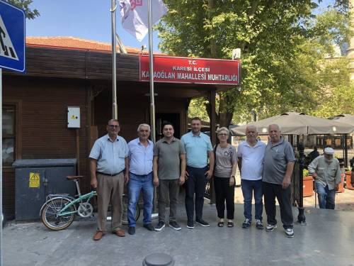 İYİ Parti Karesi İlçe Başkanı Cahit Can Tekin ve ilçe yönetim kurulu üyeleri, Karaoğlan Mahallesi’nin yeni seçilen Muhtarı Mesut Kobak'ı makamında ziyaret etti. Ziyarette yeni seçilen muhtara hayırlısı olsun dileklerini ileten İYİ Parti Heyeti mahalle sorunları ve çözüm önerileri üzerine karşılıklı görüş alışverişi gerçekleştirdi.