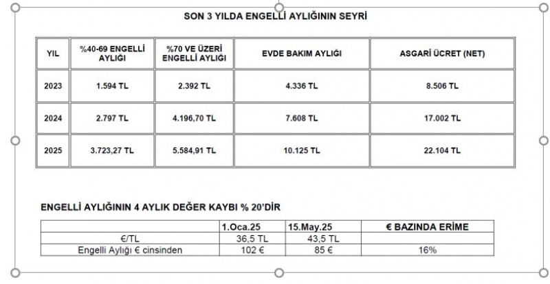 ENGELLİ MAAŞI EURO BAZINDA YÜZDE 16, TL BAZINDA YÜZDE 20 ERİDİ