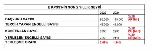Bir diğer dikkat çeken veri ise tercihte bulunan engelli sayısındaki düşüş. 2022’de 46 bin engelli vatandaş tercih yaparken, bu sayı 2024’te 43 bine geriledi. Bu düşüş kamuya yerleştirilmeme kaygısıyla sınav sistemine olan güvenin zayıfladığını ve engelli bireylerde ciddi bir umutsuzluk oluştuğunu ortaya koyuyor.