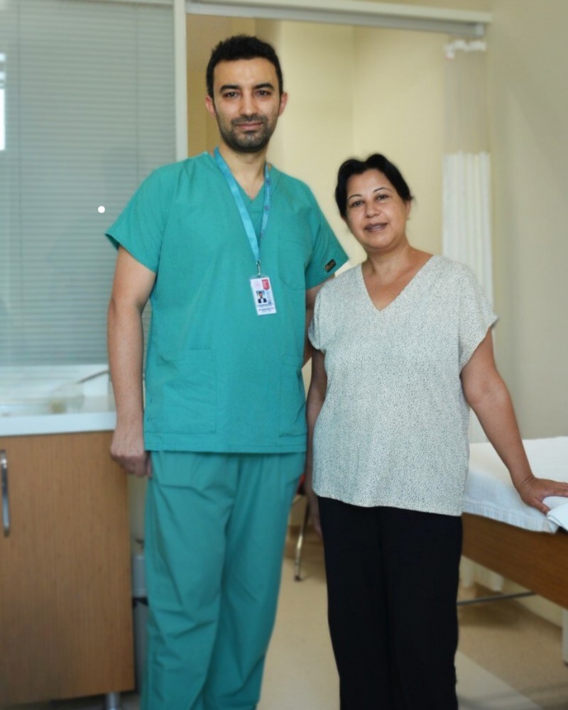 “16 yıldır sağ yüz bölgesinde dayanılmaz ağrılar çeken Özdemir’in iki dişini çekilmesine rağmen şikayetleri devam edince “Trigeminal nevralji” tanısı konmuş. Üç çeşit ilacı yüksek dozda kullanmasına rağmen şikayeti devam edince defalarca lokal işlemler yaptırmış. Yapılan detaylı muayene ve tetkikler neticesinde trigeminal nevralji teşhisi koyduk ve diğer tedaviler yanıtsız kaldığı için mikrocerrahi önerdik. Kendisi de bize güvenerek operasyonu tercih etti. Yaptığımız operasyonda özet olarak kulak arkasından yapılan kesiyle beyin sapına ulaşıyoruz ve burada yüze uzanan trigeminal sinire ulaşarak bu siniri rahatlatıyoruz. Genellikle bir atardamar basısı bunun nedeni olarak görülse de başka sebepler de söz konusu olabiliyor. Öyle ki hastamızda da bası nedeni olarak bir toplardamar tespit ettik ve cerrahi tedavisini başarıyla gerçekleştirdik. Operasyon sonrasında Ayşe Hanım ağrılarından ve yüksek doz ilaçlardan kurtuldu. Yeniden hayata döndüğünü ifade etmesi ben ve ekip arkadaşlarım için de en güzel hediye oldu. Ayşe Hanım’dan cesaret alan başka bir hastamızı da yakın zamanda opere ettik ve o da sağlığına kavuştu.
